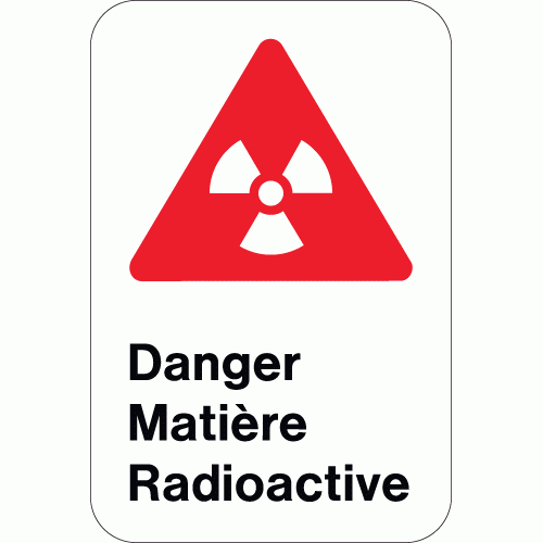 Panneau de signalisation industrielle d’avertissement de danger, danger matières radioactive, avec pictogramme standardisé