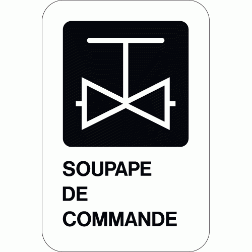 Panneau de signalisation industrielle d’information exploration, soupape de commande, avec pictogramme standardisé.