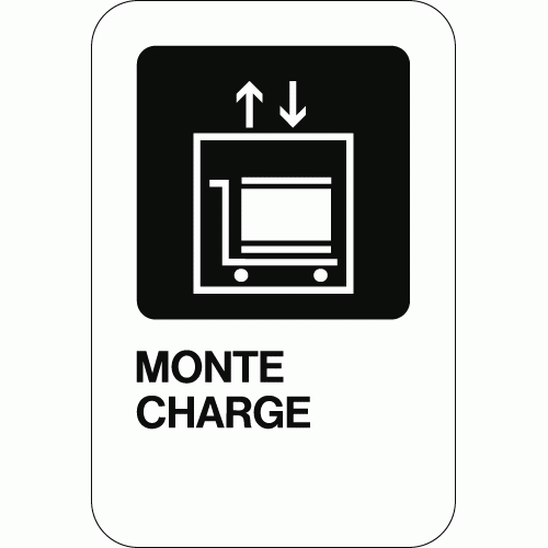Panneau de signalisation industrielle d’information exploration, monte charge, avec pictogramme standardisé.