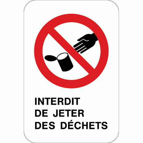Panneau de signalisation industrielle avertissant d’interdiction de jeter des déchets avec pictogramme standardisé.
