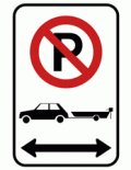 Panneau de signalisation d’indication,de stationner en parallele seulement,   avec pictogramme standardisé.