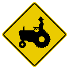 Panneau de signalisation d’indication,danger , traverse de tracteur d’agriculture, avec pictogramme standardisé.