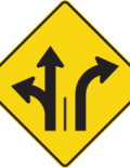 Les panneaux « Signal avancé de direction des voies » (D-100) indiquent, à l’avance, la voie dans laquelle l’usager de la route doit se ranger pour effectuer une manœuvre à une intersection. Les panneaux D-100 doivent toujours précéder les panneaux de prescription P-100 correspondants.