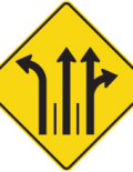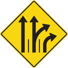Les panneaux « Signal avancé de direction des voies » (D-100) indiquent, à l’avance, la voie dans laquelle l’usager de la route doit se ranger pour effectuer une manœuvre à une intersection. Les panneaux D-100 doivent toujours précéder les panneaux de prescription P-100 correspondants.