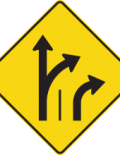 Les panneaux « Signal avancé de direction des voies » (D-100) indiquent, à l’avance, la voie dans laquelle l’usager de la route doit se ranger pour effectuer une manœuvre à une intersection. Les panneaux D-100 doivent toujours précéder les panneaux de prescription P-100 correspondants.