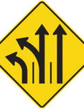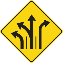 Les panneaux « Signal avancé de direction des voies » (D-100) indiquent, à l’avance, la voie dans laquelle l’usager de la route doit se ranger pour effectuer une manœuvre à une intersection. Les panneaux D-100 doivent toujours précéder les panneaux de prescription P-100 correspondants.