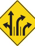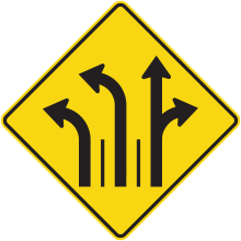 Les panneaux « Signal avancé de direction des voies » (D-100) indiquent, à l’avance, la voie dans laquelle l’usager de la route doit se ranger pour effectuer une manœuvre à une intersection. Les panneaux D-100 doivent toujours précéder les panneaux de prescription P-100 correspondants.