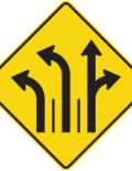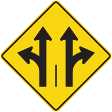Les panneaux « Signal avancé de direction des voies » (D-100) indiquent, à l’avance, la voie dans laquelle l’usager de la route doit se ranger pour effectuer une manœuvre à une intersection. Les panneaux D-100 doivent toujours précéder les panneaux de prescription P-100 correspondants.