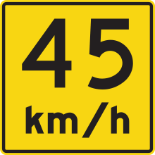 Le panonceau (D-110-P-2) indique la vitesse recommandée pour circuler près d’un obstacle ou d’un point dangereux sur un chemin public. Ce panonceau doit toujours être installé sous le panneau de danger qui justifie la vitesse recommandée, sur le même support. Lorsque le panonceau est utilisé avec les panneaux de virage, ceux-ci doivent être choisis conformément au tome V.