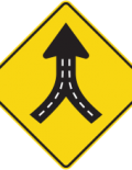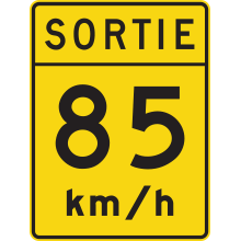 Le panneau « Vitesse recommandée dans une voie de sortie » (D-120) indique la vitesse recommandée dans les voies de sortie d’une autoroute. Ce panneau doit être installé au point de divergence de la voie de sortie.