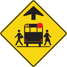 Le panneau «Signal avancé d’arrêt d’autobus scolaire» (D-260) indique, à l’avance, la présence possible d’un autobus scolaire immobilisé pour faire monter ou descendre des écoliers. Ce panneau doit être installé conformément aux critères d’installation présentés au Tome V.