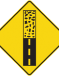 Le panneau «Changement de l’état d’une chaussée» (D-340) indique l’approche d’une chaussée rainurée ou, sur un pont, d’un tablier en treillis métallique ou en bois.