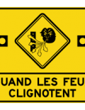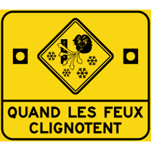 Le panneau « Bourrasque » (D-061-1) indique la présence d’une zone de vents violents sur un chemin public.