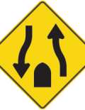 Les panneaux « Chaussées séparées » (D-90) indiquent l’approche du début ou de la fin d’une chaussée séparée.
