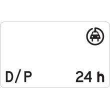 Inscription 24 h, symbole de borne de recharge pour véhicules électriques et un type de carburant.