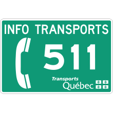 Le panneau « Service d’information en transport – 511 » (I-414) indique aux usagers le numéro de téléphone abrégé qu’ils peuvent composer pour obtenir de l’information en matière de transport.