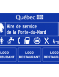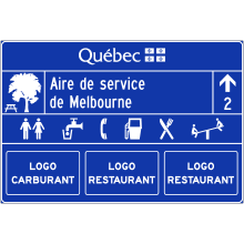 Les panneaux « Aire de service » (I-650) indiquent la présence d’une aire de service aménagée en bordure d’une route afin d’offrir des services de base tels que toilettes, aire de pique-nique, stationnement, restauration, téléphone et des services complémentaires, notamment le poste de carburant.