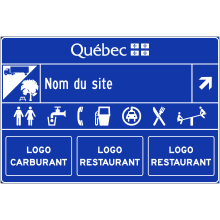 Les panneaux « Aire de service pour véhicules lourds » (I-660) indiquent la présence d’une aire de service aménagée en bordure d’une route afin d’offrir des services de base tels que toilettes, aire de pique-nique, stationnement, restauration, téléphone et des services complémentaires, notamment le poste de carburant. Lorsque des services particuliers sont offerts aux conducteurs des véhicules lourds, tels qu’une salle de repos et des douches, les panneaux « Aire de service pour véhicules lourds » (I-660) sont utilisés.