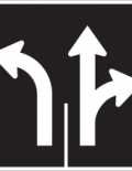 Les panneaux et les panonceaux «Direction des voies» (P-100) indiquent, pour les voies visées ce qui suit: Voie de gauche: tourner à gauche ou aller tout droit et voie de droite: tourner à droite.