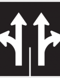 Les panneaux et les panonceaux «Direction des voies» (P-100) indiquent, pour les voies visées ce qui suit: Voie de gauche : aller tout droit ou tourner à gauche et voie de droite : aller tout droit.