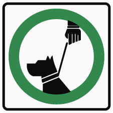 Panneau de signalisation d’indication autorisation de promener le chien en laisse  P-120-100, avec pictogramme standardisé.