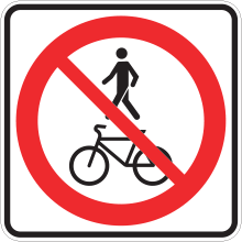 Le panneau P-130-11 indique que l’accès est interdit aux piétons et aux bicyclettes.