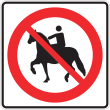 Le panneau P-130-13 indique que l’accès est interdit aux cavaliers.