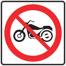 Le panneau P-130-5 indique que l’accès est interdit aux motocyclistes.
