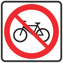 Le panneau P-130-6 indique que l’accès est interdit aux bicyclettes.