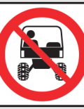 Le panneau P-130-61 indique que l’accès est interdit aux motoquads sur chenilles.