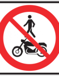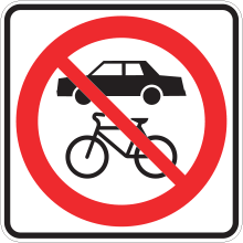 Le panneau P-130-9 indique que l’accès est interdit aux automobiles et aux bicyclettes.
