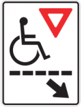 Le panneau «Passage pour personnes atteintes de déficience physique» (P-270-4) indique à l'usager de la route la présence d'un passage pour personnes atteintes de déficience physique. La flèche sur ces panneaux doit pointer vers la chaussée et la silhouette doit être orientée vers la chaussée. Le panneau P-270-4-A doit être installé au-dessus du passage.