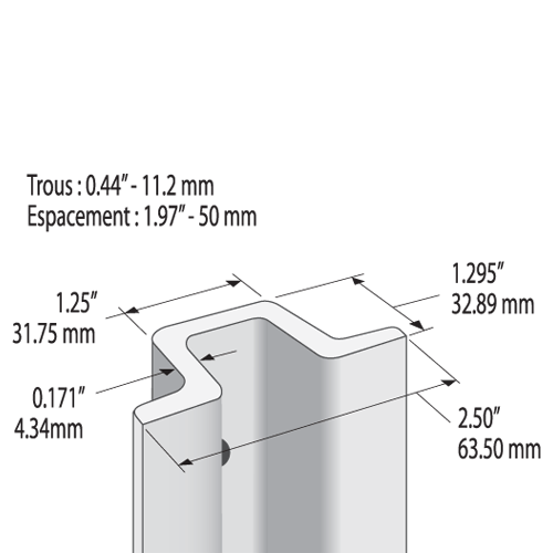 Poteau traité par galvanisation à chaud selon la norme ASTM-A123 avec pointe effilée facilement insérable dans le sol. Muni de perforations à tous les 2 » (5.08 cm) centre-à-centre sur toute la longueur du poteau.