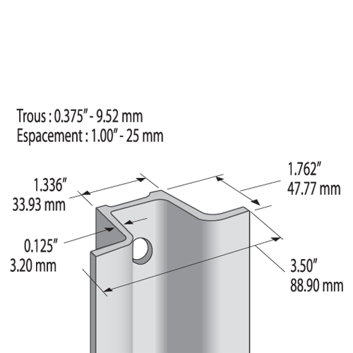 Poteau traité par galvanisation à chaud selon la norme ASTM-A123 avec pointe effilée facilement insérable dans le sol. Muni de perforations à tous les 1 » (2.54 cm) centre-à-centre sur toute la longueur du poteau.