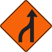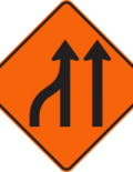 Les panneaux «Fusion de voies» (T-100) indiquent, sur un chemin public comportant plus d’une voie de circulation dans le même sens, qu’une des voies de circulation est temporairement fermée en raison de travaux et qu’il y a lieu d’emprunter celles demeurées ouvertes à la circulation.