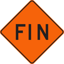Le panneau « Fin des travaux » (T-40) indique la fin d’une aire de travail.