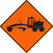 Le panneau « Niveleuse » (T-50-6) indique la présence d’une niveleuse effectuant des travaux sur une voie de circulation ou aux abords de celle-ci.
