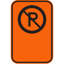 Les panneaux «Réglementation temporaire du stationnement» (T-75) indiquent les endroits où le stationnement est interdit de façon temporaire à proximité d’une aire de travail ou lors d’événements spéciaux et d’opérations d’entretien routier. Lorsqu’ils sont utilisés, ces panneaux ont priorité sur la réglementation des panneaux «Stationnement réglementé» (P-150).