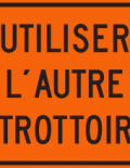 Le panneau « Sentier de VHR barré » (T-80) indique qu’un sentier de VHR est temporairement fermé à la circulation. Ce panneau doit être installé sur la barrière fermant le passage à la circulation.