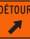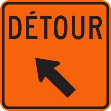 Les panneaux «Détour» indiquent la direction de l’itinéraire de détour prévu que doivent suivre les usagers de la route ou les cyclistes en raison des travaux.