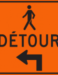 Les panneaux « Détour » (T-90-6 à T-90-8) indiquent la direction du chemin de détour que doivent suivre les cyclistes en raison des travaux.