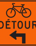 Les panneaux « Itinéraire facultatif » (T-95) indiquent, le cas échéant, l’itinéraire facultatif proposé aux usagers de la route en raison des risques de congestion occasionnés par des travaux en aval.