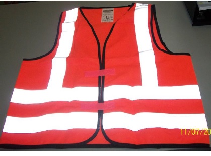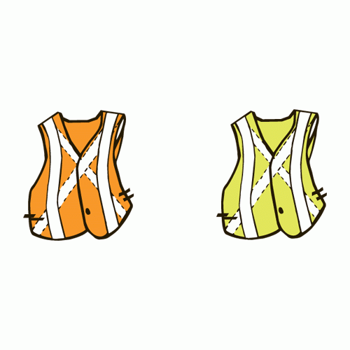 Veste de sécurité avec bandes réfléchissantes (orange) ou veste pour signaleur (fluo chartreuse). Peut venir lettré ou avec logo de votre organisme.